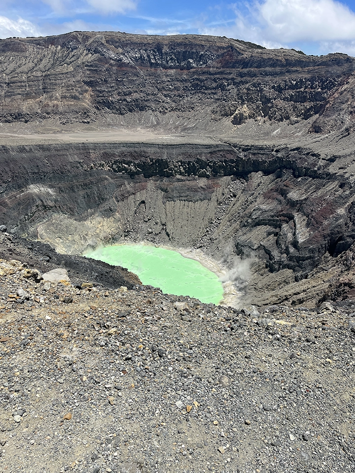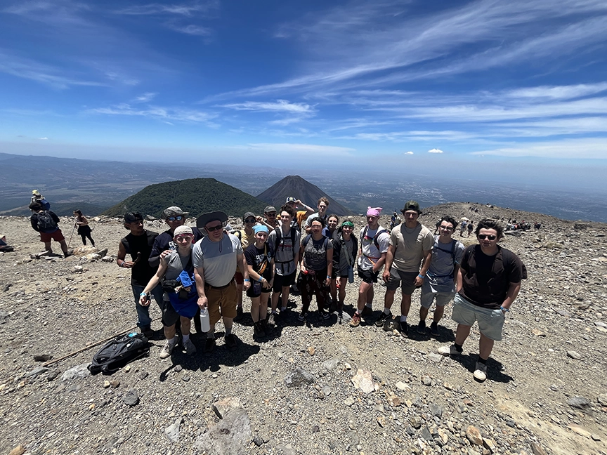 Today was our fun and touring day. On the road at the ripe and ready time of 6 am, Roland and Alexis took us down the coast towards the notorious national park~ the Santa Anna Volcano. A packed breakfast in the vans, a quick stop for potty and a coffee, and we were on the trail by 9:30 in the morning. Our local guides took us up the well worn trail to the upper cone of the volcano. Similar to climbing one of the smaller mountains in New Hampshire, a journey was refreshing, exhilarating, and a whole new experience for the team. And happy to say, although it is still an active volcano, it did not erupt today!
